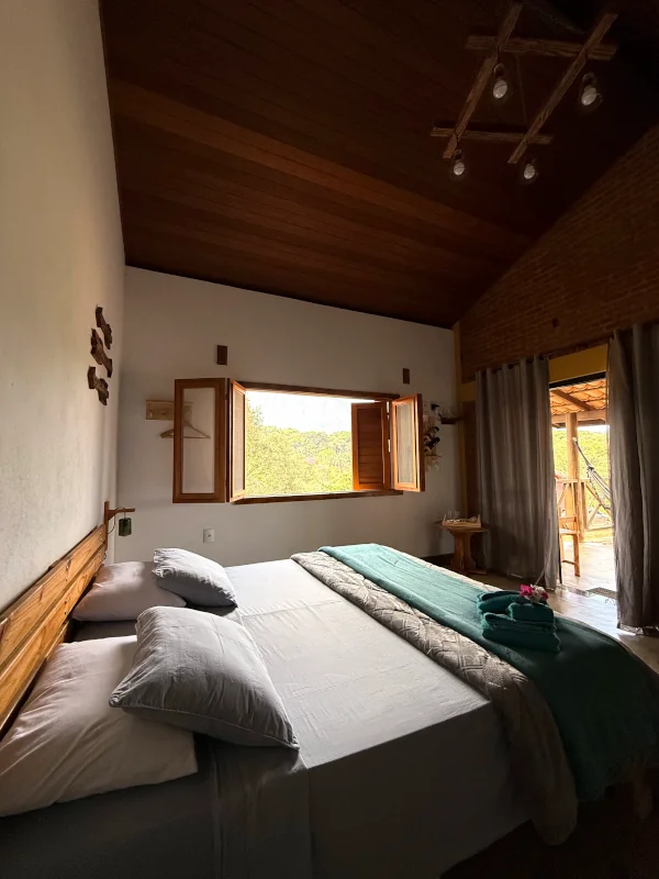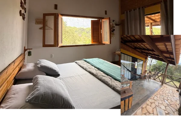 A maioria possui uma varanda privativa, perfeita para saborear um café ou admirar a vista das montanhas. A arquitetura rústica e a decoração aconchegante fazem você se sentir em casa, oferecendo charme e serenidade que só a nossa pousada pode proporcionar.